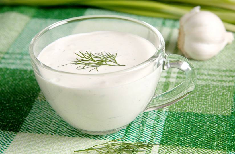 Если вам хочется получить менее калорийный вариант майонеза, можно развести его со сметаной (в пропорции 1:1) или натуральным несладким йогуртом.