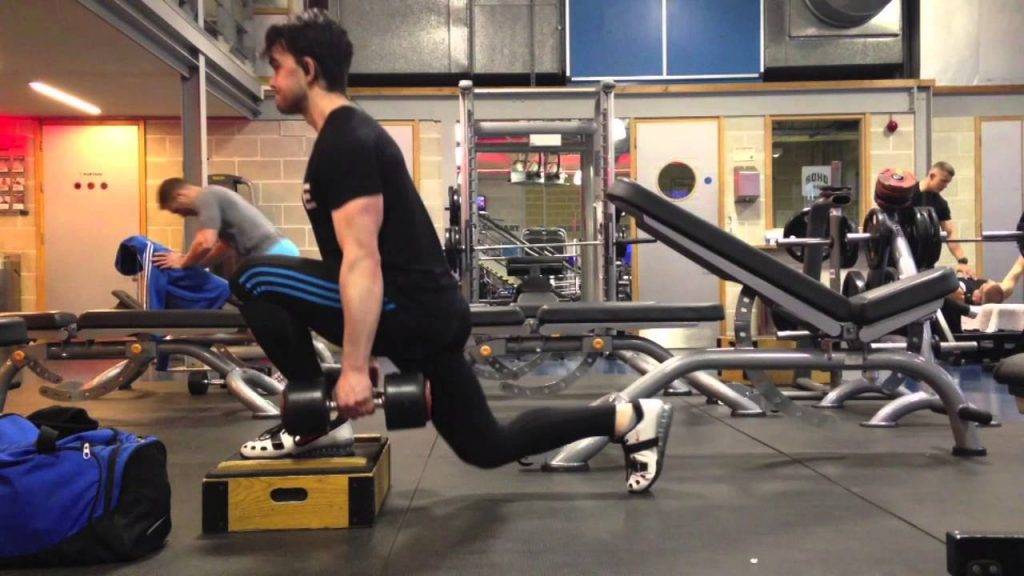 - Сплит-приседания с одной ногой на лавке: сделайте дроп-сеты (снижение рабочего веса несколько раз за подход по мере утомления мышцы) с паузой несколько секунд в конце подхода.