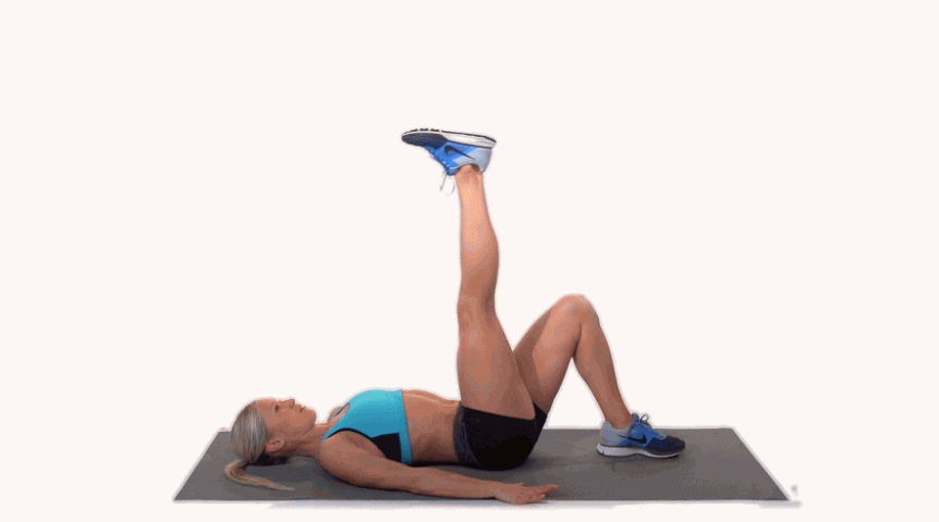 Шаг 2: Поднимите правую ногу и согните колено на 90 градусов. Согнув ногу, напрягите ягодицы и поднимите правую пятку к потолку как можно выше. Сделайте паузу, затем верните правое колено назад, чтобы оно встретилось с левым коленом, чтобы завершить одно повторение.
