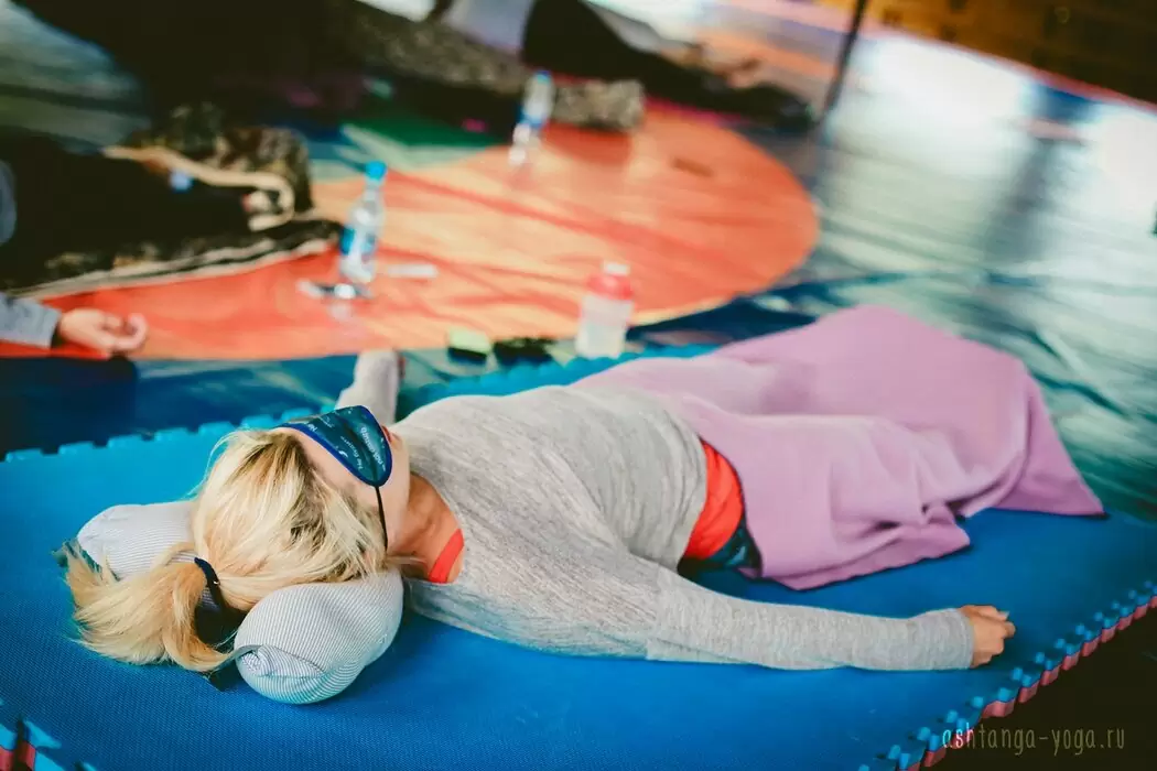 В завершении тренировки выполняются асаны в воздушном пространстве: медленный переход от простых упражнений к перевернутым позам. На этом этапе требуется усиленная концентрация внимания и физическая подготовка. Новички приходят к таким упражнениям постепенно. Последний этап тренировки – расслабление во время медитации. Это помогает убрать напряжение из мышц и настроиться на позитивное мышление.