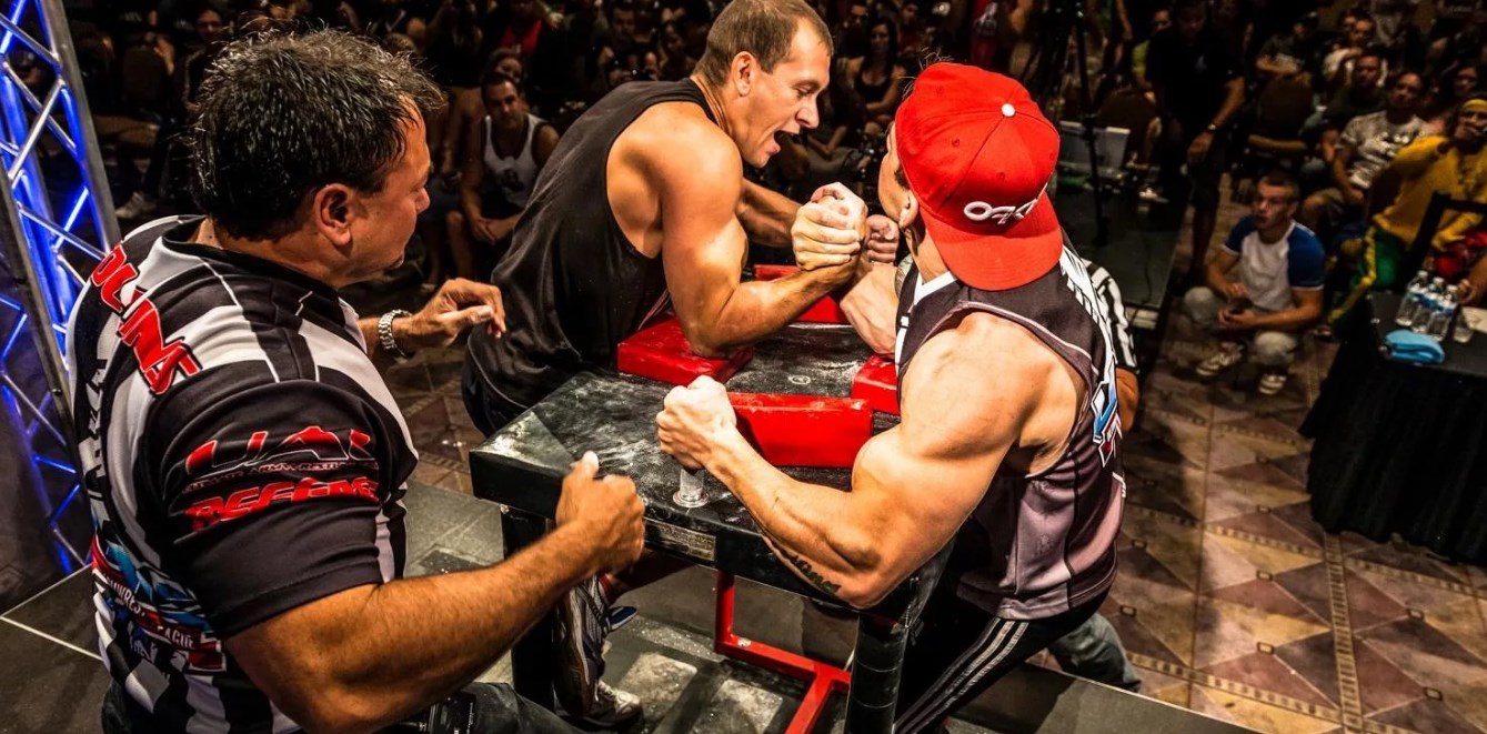 Армреслингом называется силовой поединок на руках, из положения сидя. При этом участвует одна рука, другой рукой боец держится за специальное крепление. Победителем признается тот, кому удается положить руку противника тыльной стороной на ровную поверхность. Соревнования проводятся поочередно обеими руками. Для достижения значительных результатов в этом единоборстве спортсмен должен развивать мускулы верхнего плечевого пояса, спины, тазового пояса и ног.