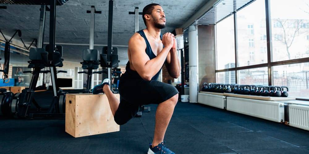 Исходное положение: Поставьте заднюю ногу на скамью или закругленную подушку. Ваш центр масс должен располагаться над передней ногой, и вы должны немного наклоняться вперед.