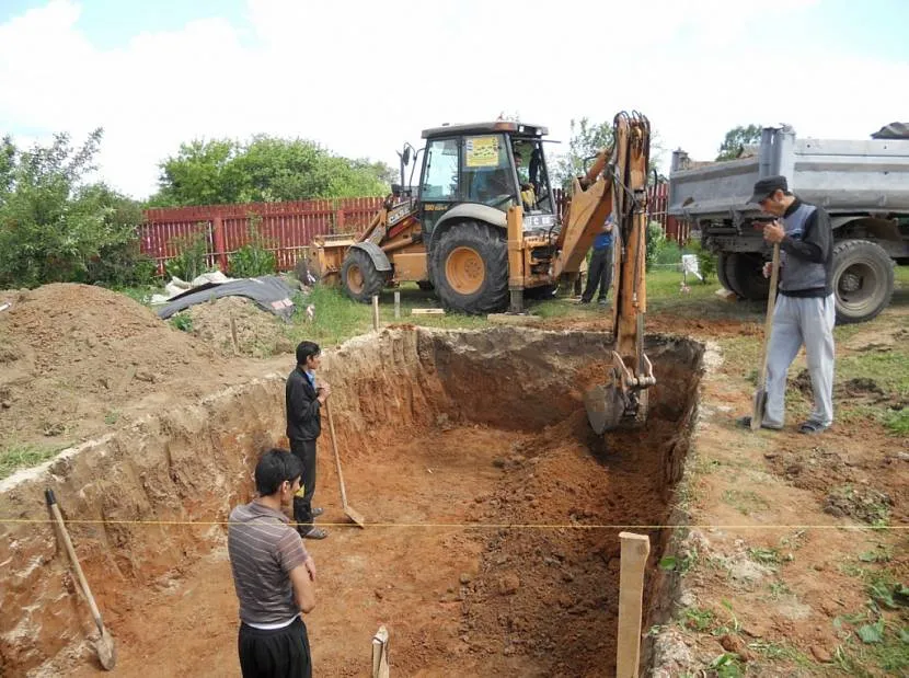 Рытье котлована для обустройства чаши для купания может осуществляться как вручную, так и спецтехникойИсточник maja-dacha.ru