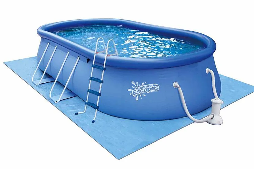 Преимуществом их можно назвать отсутствие необходимости демонтажа в холодное время года. Достаточно просто убрать натяжной элемент из поливинилхлорида. Типовой комплект бассейна включает в себя насос с установкой фильтрации воды и скимммер (устройство для очистки). Средняя стоимость каркасных изделий составляет от 40 до 100 тысяч рублей.