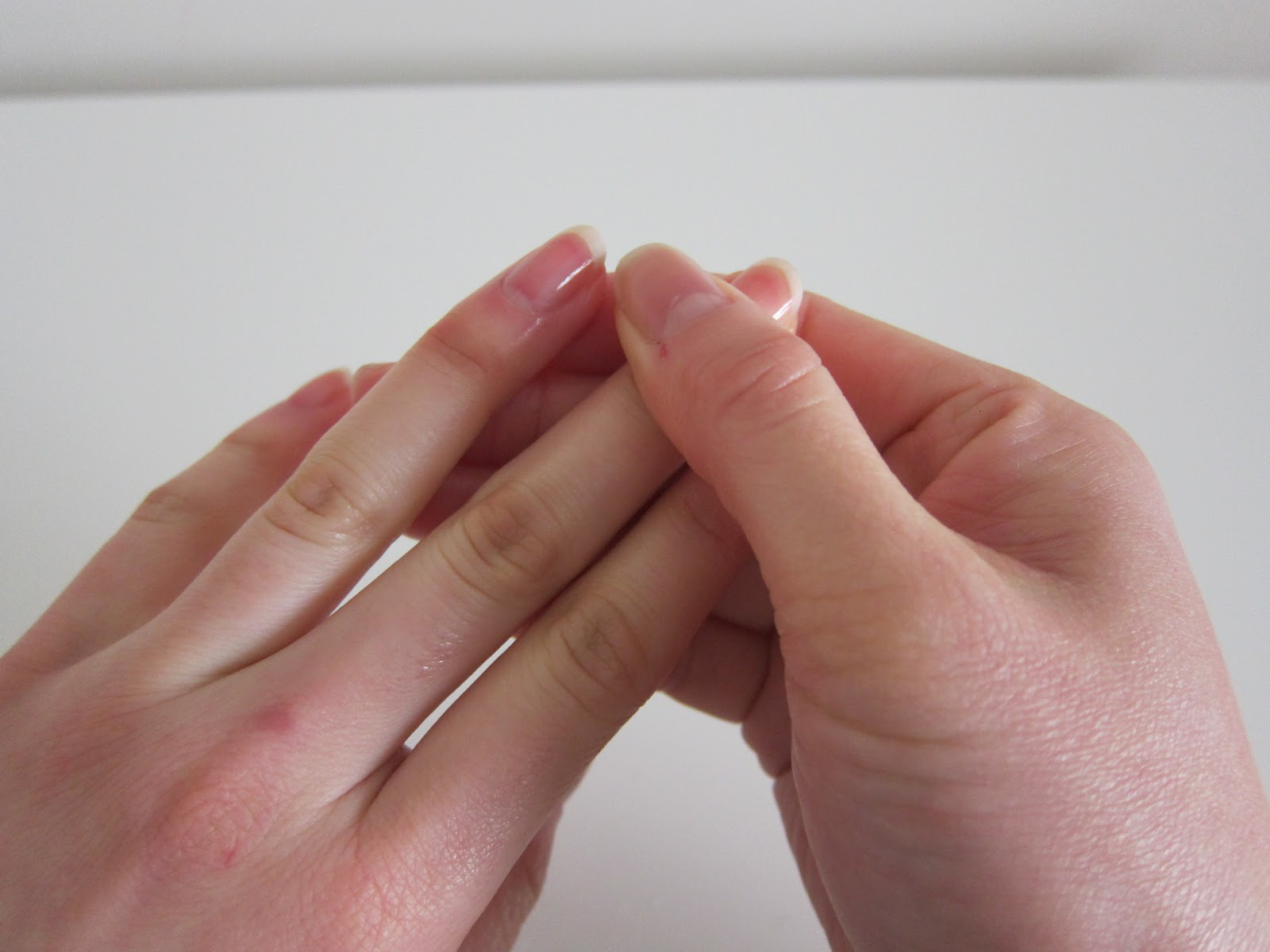 Согни средние пальцы рук так, чтобы они соприкасались друг с другом ногтями. Остальные пальцы выпрями.