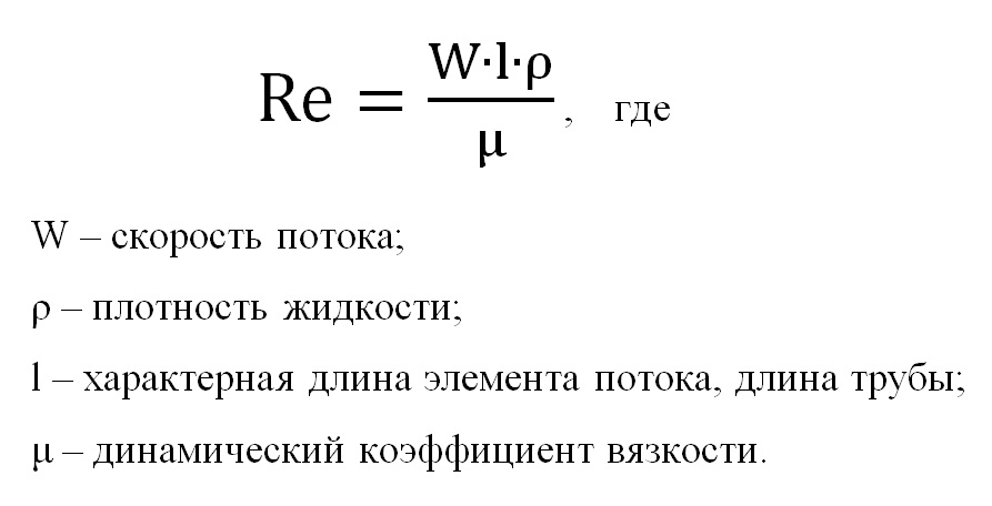 Критерий Рейнольдса (Re) дает понятие о соотношении сил инерции к силам вязкого трения в потоке жидкости. Значение критерия характеризует изменение соотношения указанных сил, что, в свою очередь, влияет на характер потока носителя в трубопроводе. Принято выделять следующие режимы потока жидкого носителя в трубе в зависимости от значения данного критерия: