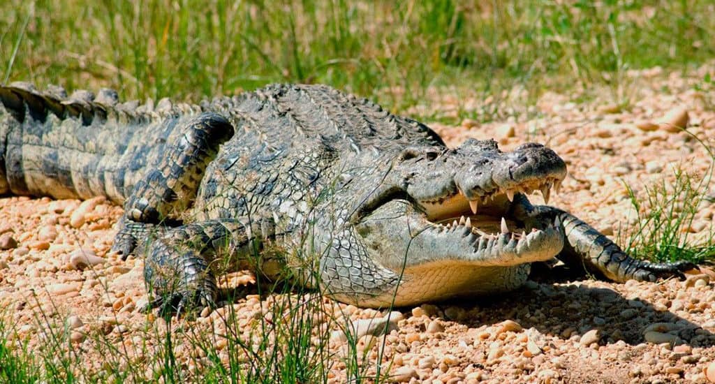 Нильский крокодил – самая большая рептилия в мире. Особи могут достигать 6 м в длину и весить более 700 кг. Они являются долгожителями и могут доживать до 40 лет. Нильские крокодилы – плотоядные животные. Их основной рацион составляет мясо рыбы, детенышей бегемотов и парнокопытных, которые приходят утолить жажду к реке (зебры, антилопы и пр.). Они также могут полакомиться и человеком. По статистике, ежегодно около 150 человек становятся жертвами нильского крокодила. В середине XX века крокодилы были под угрозой вымирания из-за массового уничтожения. Сегодня эти животные включены в число охраняемых видов и их популяция увеличилась.