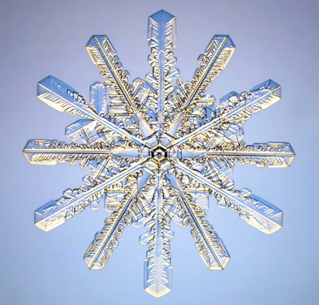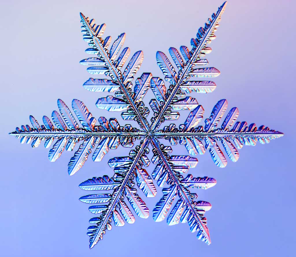 Бентли смог сфотографировать более 5000 разных видов снежинок, с чего был сделан вывод: двух одинаковых снежинок не существует. На самом деле, это просто красивая фраза. Да, вариантов форм снежинок действительно бесчисленное множество — как атомов во Вселенной, но это не исключает их повторов.