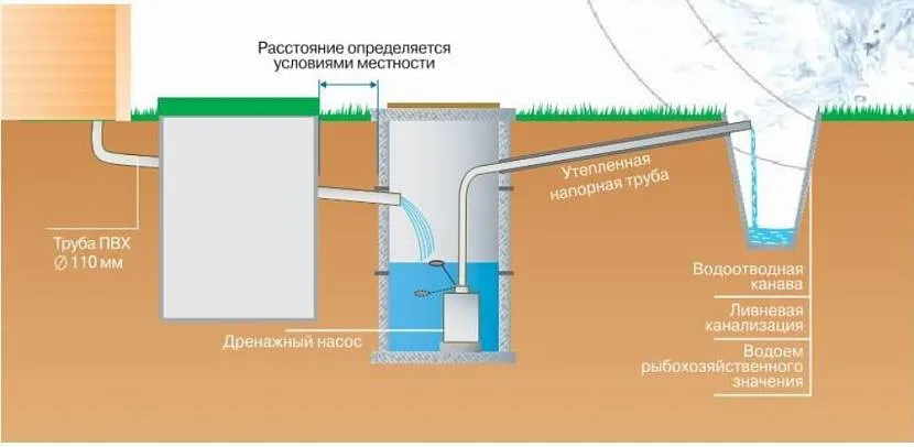 Схема дренажной системы с насосом Источник kanalizaciya-expert.ru