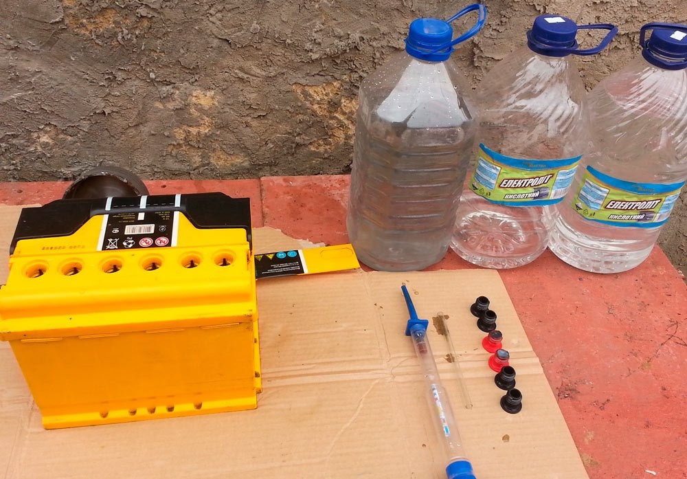 С отремонтированными аккумуляторами ситуация проще. В верхней части корпуса есть заглушки. Они откручиваются, что открывает доступ к каждой из 6 секций в отдельности. Это банки. Их легко наполнять водой.