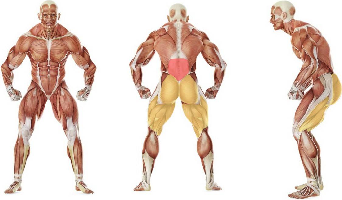 | Большая ягодичная | Ягодицы | Поднимая торс из наклона, разгибает тазобедренный сустав |