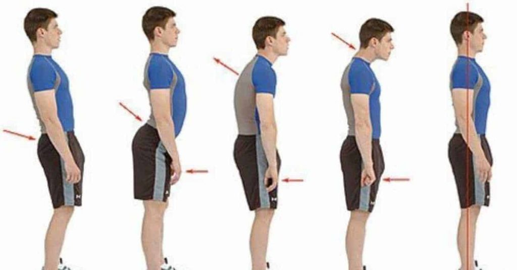 - Плоская спина — при этом типе постуры наблюдается протракция головы, разгибание шейного и грудного отделов позвоночника, уменьшение поясничного лордоза и задний наклон таза.