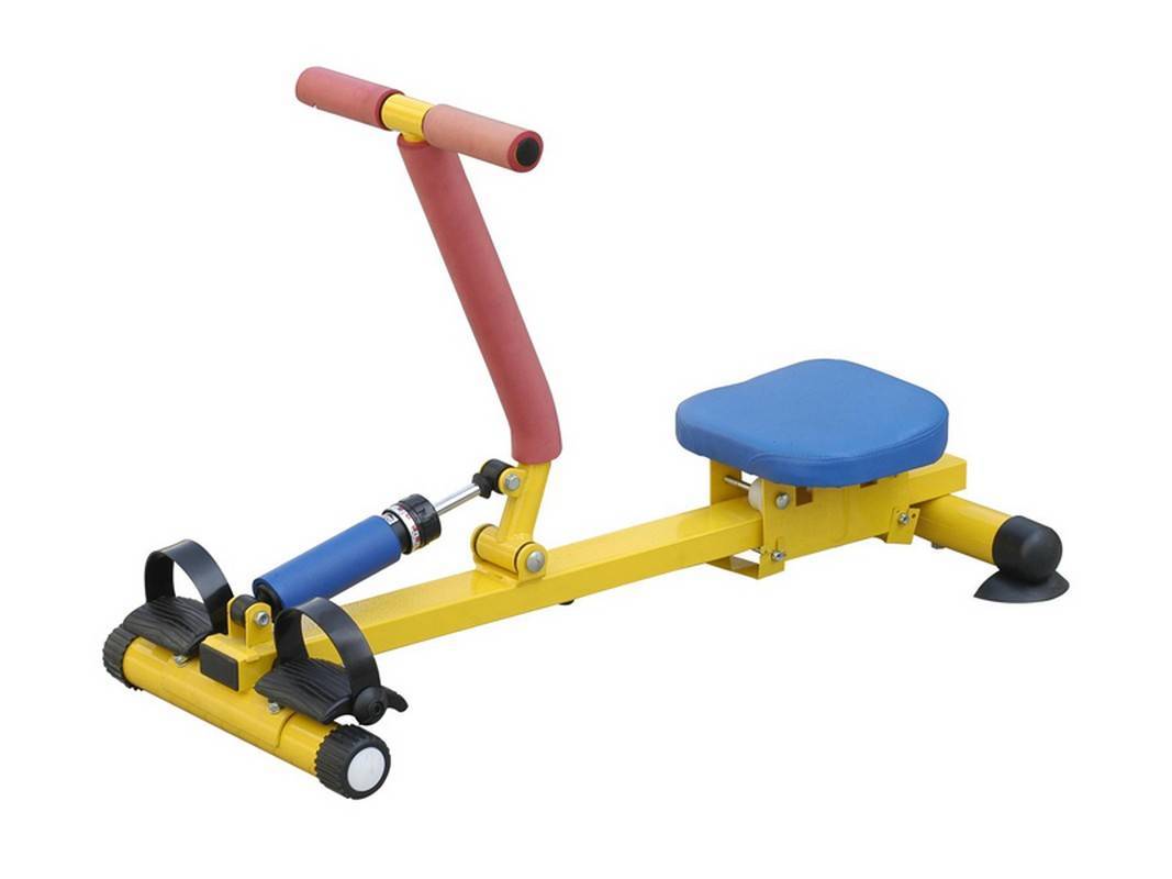 Гребной тренажер, известный также как гребля, предназначен для комплексного воздействия на все мышечные группы, укрепления сердечно-сосудистой системы. Наиболее задействованными оказываются мышцы спины, живота, ног и плечевого пояса. Снаряд состоит из рамы, подвижного сиденья, работающего за счет рельсов, опорной конструкции для ног, маховика, рычагов. У многих современных моделей есть электронный датчик для выбора программы и отслеживания прогресса.