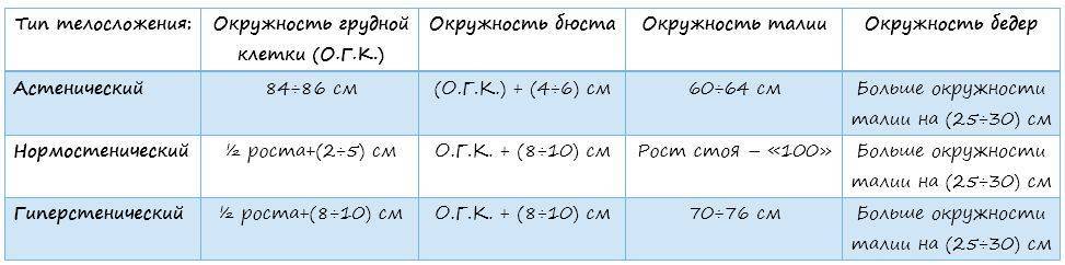 Теперь необходимо понять, каковы идеальные параметры роста для различных типов телосложения:
