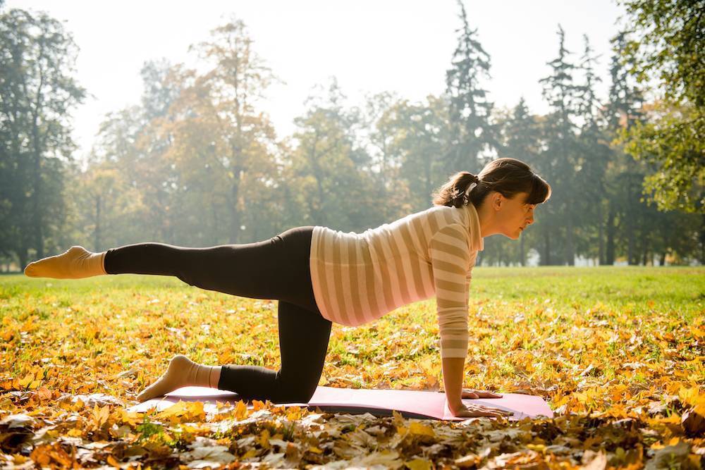 Для тех, кому зарядка при беременности кажется слишком простой и есть спортивный опыт за плечами, рекомендуем к позе выше добавить вытягивание вперед руки, противоположной отведенной ноге. В таком положении нужно зафиксироваться на небольшое время, поймать равновесие и плавно опустить конечности на пол, повторив на другую сторону.