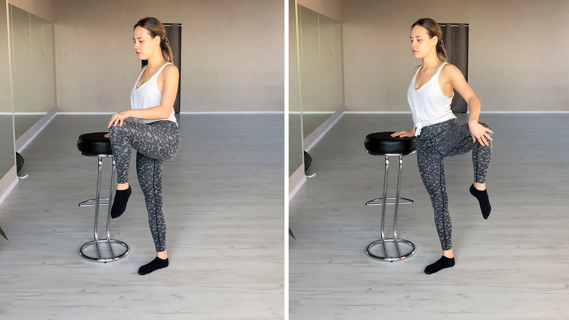 - Удерживайте положение 8-12 секунд и смените ноги ещё два-три раза.