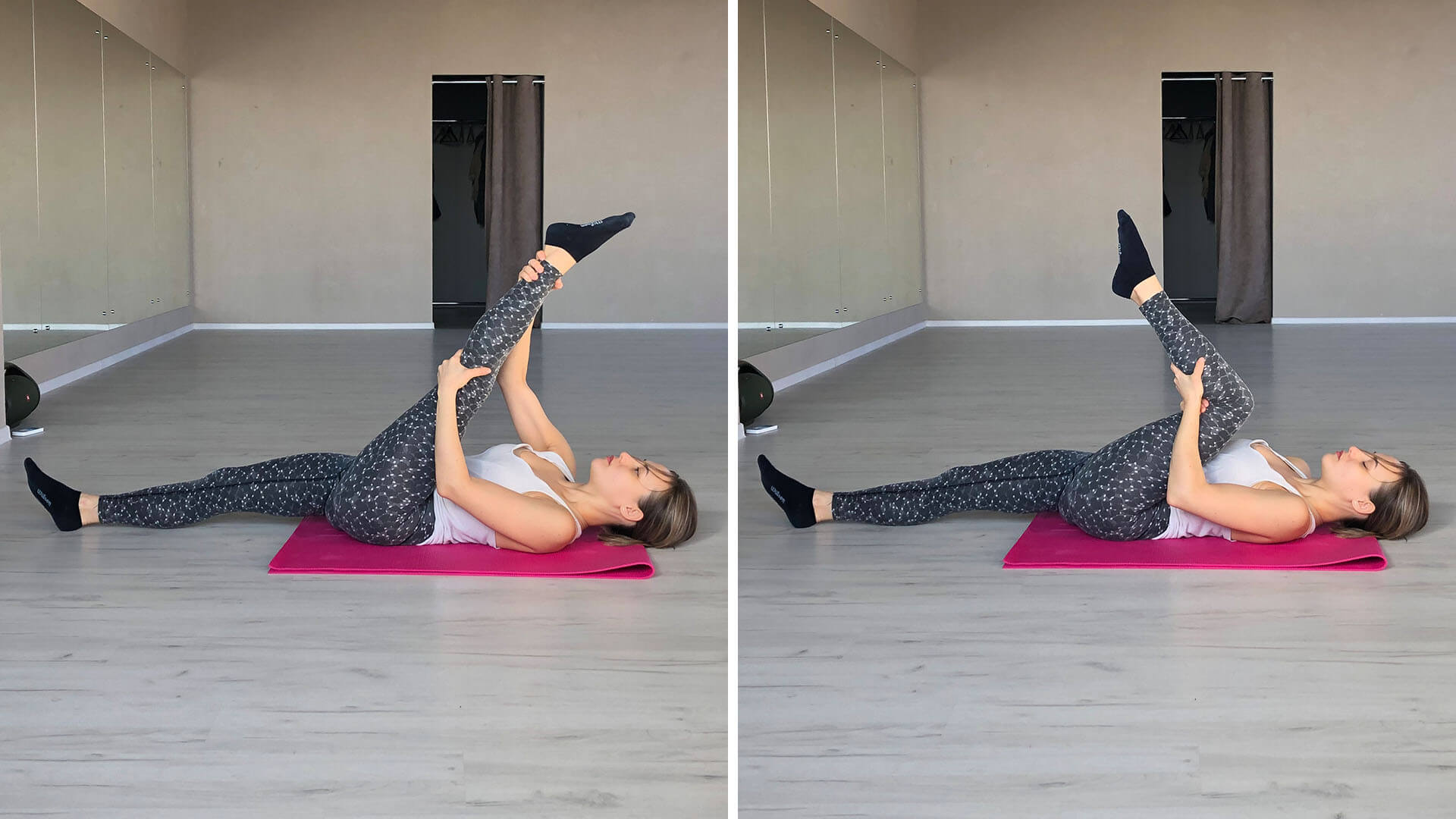 - Затем согните 2 ноги и удержите положение 5-10 секунд.