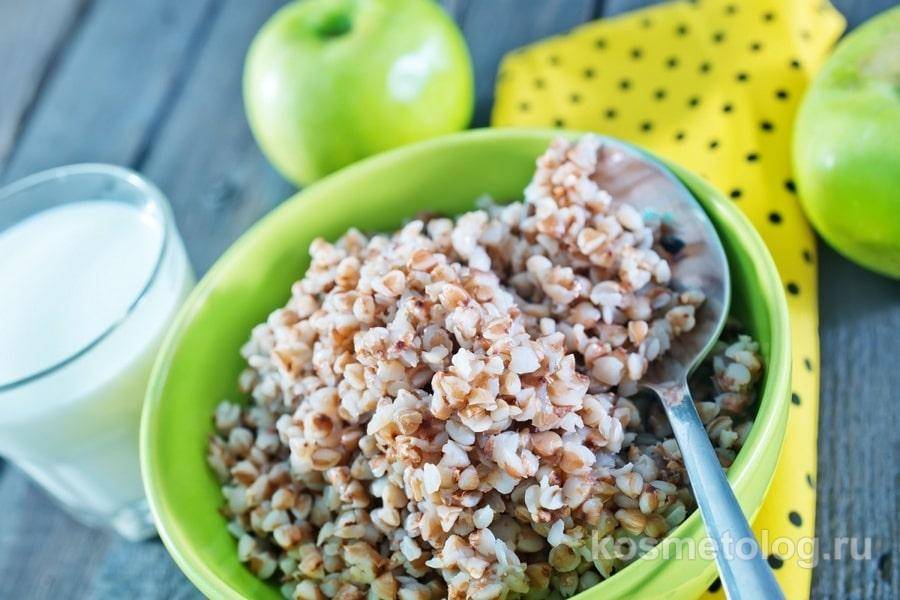 Крупа гречка содержит белок, клетчатку, рутин, флавоноиды, фолиевую кислоту, витамины группы B, калий, цинк, железо, фосфор. Гречневая диета способствует выведению излишков жидкости из тканей, очищению стенок органов пищеварительного тракта от шлаков и токсинов. Как следствие, убрать бока и живот становится легче. Меню состоит исключительно из запаренной гречневой крупы, зеленого чая и чистой воды. В кашу можно добавлять рубленую свежую зелень. Если не покидает желание разнообразить рацион, можно добавить в меню обезжиренный кефир – не больше 1,5 литра в день. Особенности и принципы гречневой диеты: