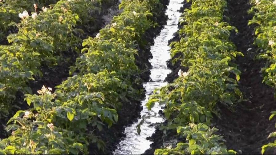 Полив по продольным бороздам