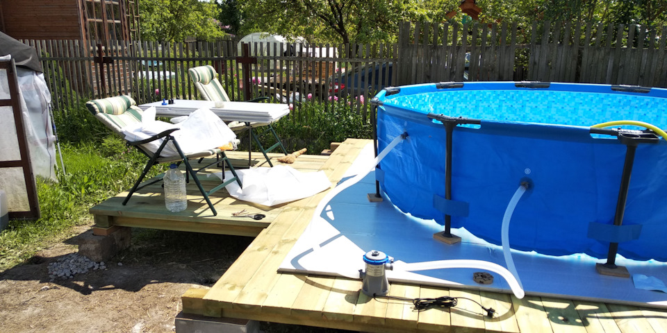 Процесс монтажа конструкции на местности зависит от вида чаши. Если это деревянный бассейн каркасного типа, под него копают яму до 30 см глубиной, под надувные конструкции выкладывают плотные слои мягких материалов. Основное правило перед покупкой – оценить размеры модели и привязать ее к местности.