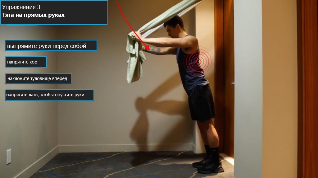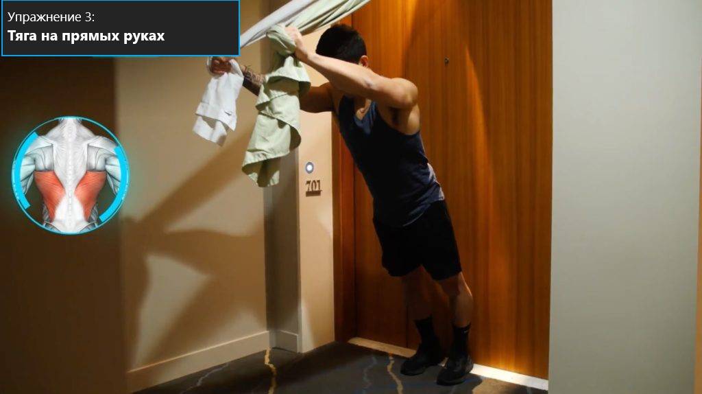 Вернемся к проработке широчайших мышц, ведь именно они делают спину шире при правильных тренировках. Для этого упражнения понадобятся простыни. Для выполнения упражнения: