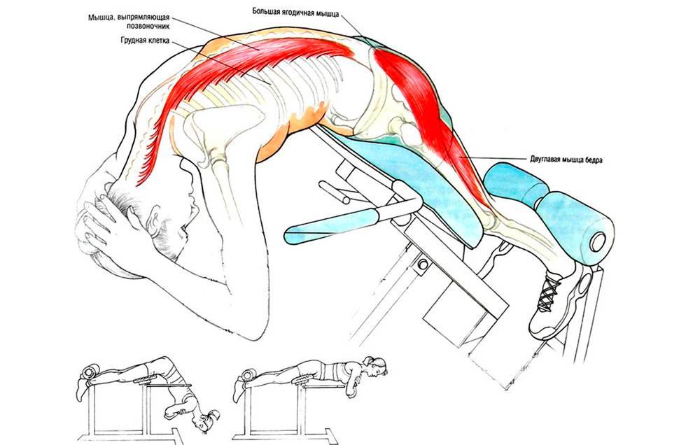 Гиперэкстензией называется упражнение, которое задействует мышцы спины, точнее, её поясничный отдел. В спортзале для выполнения вам понадобится римский стул. Перед началом, отрегулируйте его под свой рост.