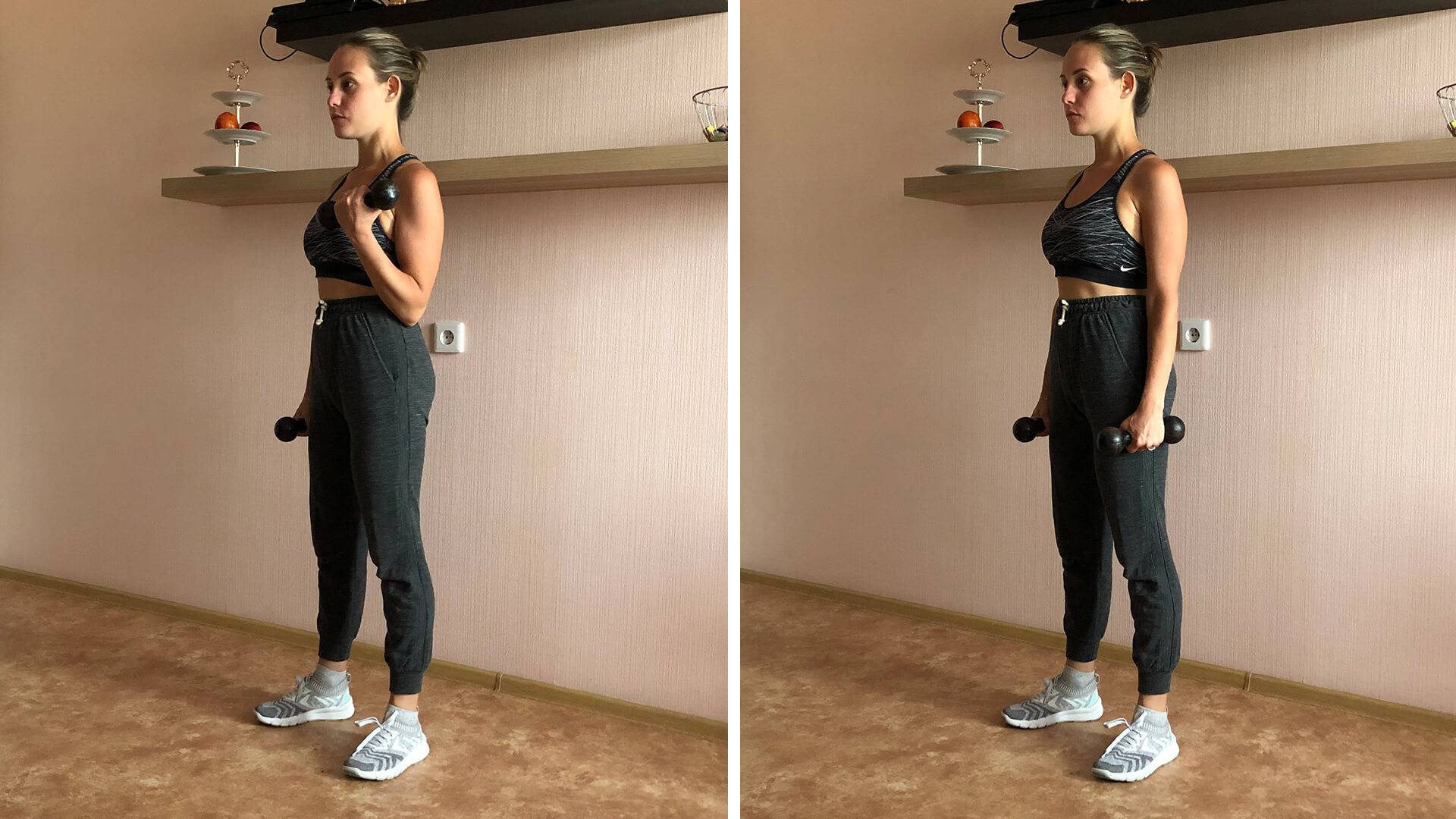 Вам понадобится набор гантелей, которые можно заменить банками с водой или иным подходящим утяжелением. Не забывайте всегда выполнять все правильно и не использовать слишком большой вес ради вашей безопасности.