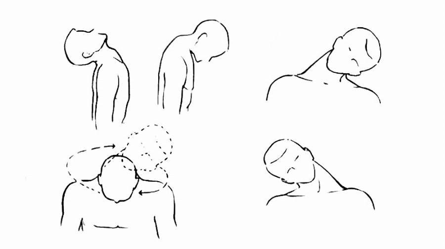 Наклоны головы вперед-назад, боковые наклоны, вращения