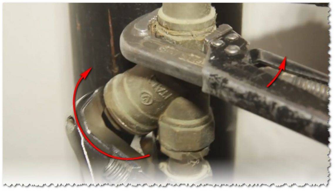 После того, как гайку «сорвали» с места, откручиваем её вручную. Будьте готовы к тому, что вытечет остаток воды.