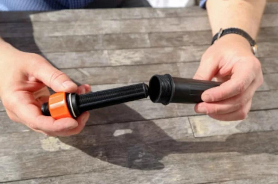 - Соедините небольшим куском магистрального шланга специальный штуцер типа «тройник», к которому присоедините прозрачную трубку для отображения уровня воды в бочке.