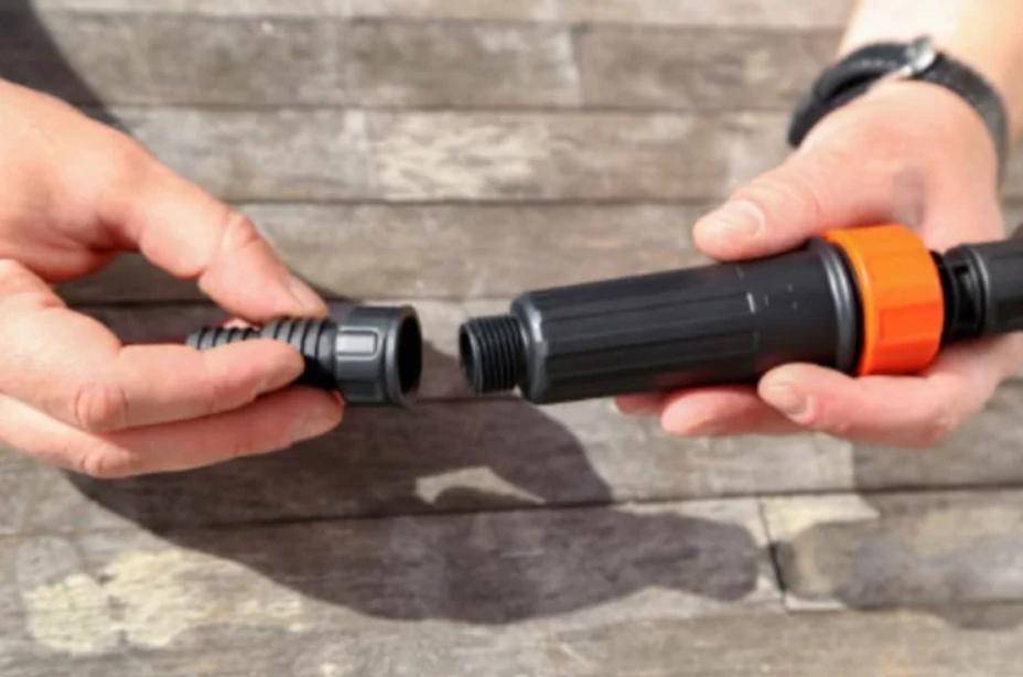 - Сборка капельниц. Надломите каждую трубку и отделите от кассеты. Соедините с более узким подающим шлангом, комплект которых можно найти в упаковке. Для удобства соединения конец шланга стоит опустить на несколько секунд в теплую воду для размягчения и большего удобства в монтаже. Полученные соединения попарно соедините друг с другом при помощи небольшого фитинга типа «тройник». Количество выполненных соединений должно равняться количеству растений.