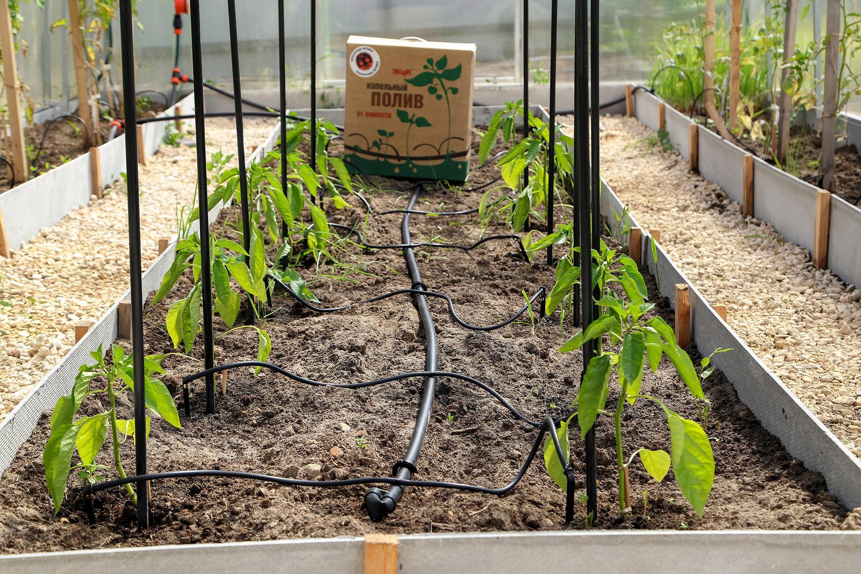 - продуманное расположение капельниц: они закреплены так, что большие растения можно поливать с двух сторон, а маленькие по две штуки от одного отвода;