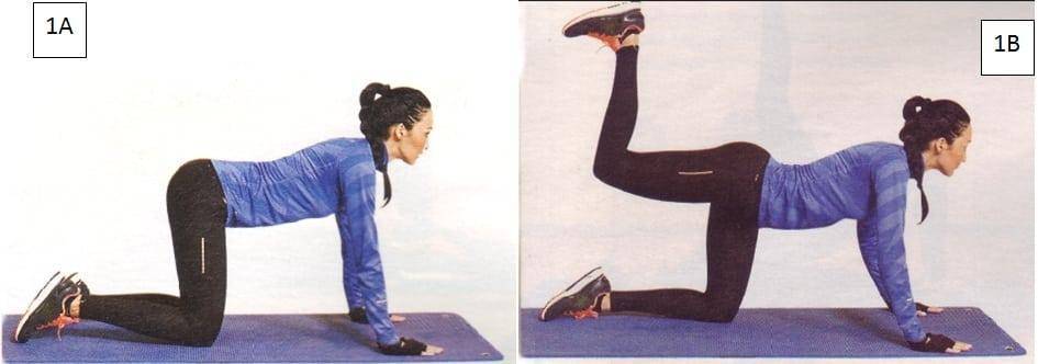 Отведение ноги вверх в положении «на четвереньках». Приняв исходную позицию, необходимо отводить поочередно ноги назад и вверх. Спину при этом удерживаем прямо. Качаем мышцы, двигаясь плавно без рывков и подергиваний.