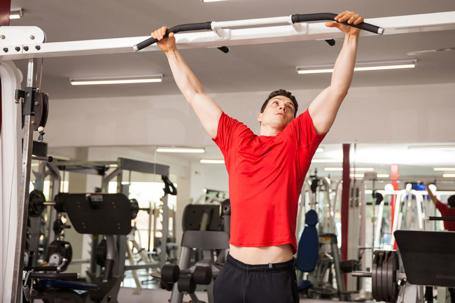 Также можно подтягиваться на невысокой перекладине таким образом, чтобы подбородок находился над турником. Еще один вариант – работать на тренажере Смита, который есть в любом тренажерном зале.