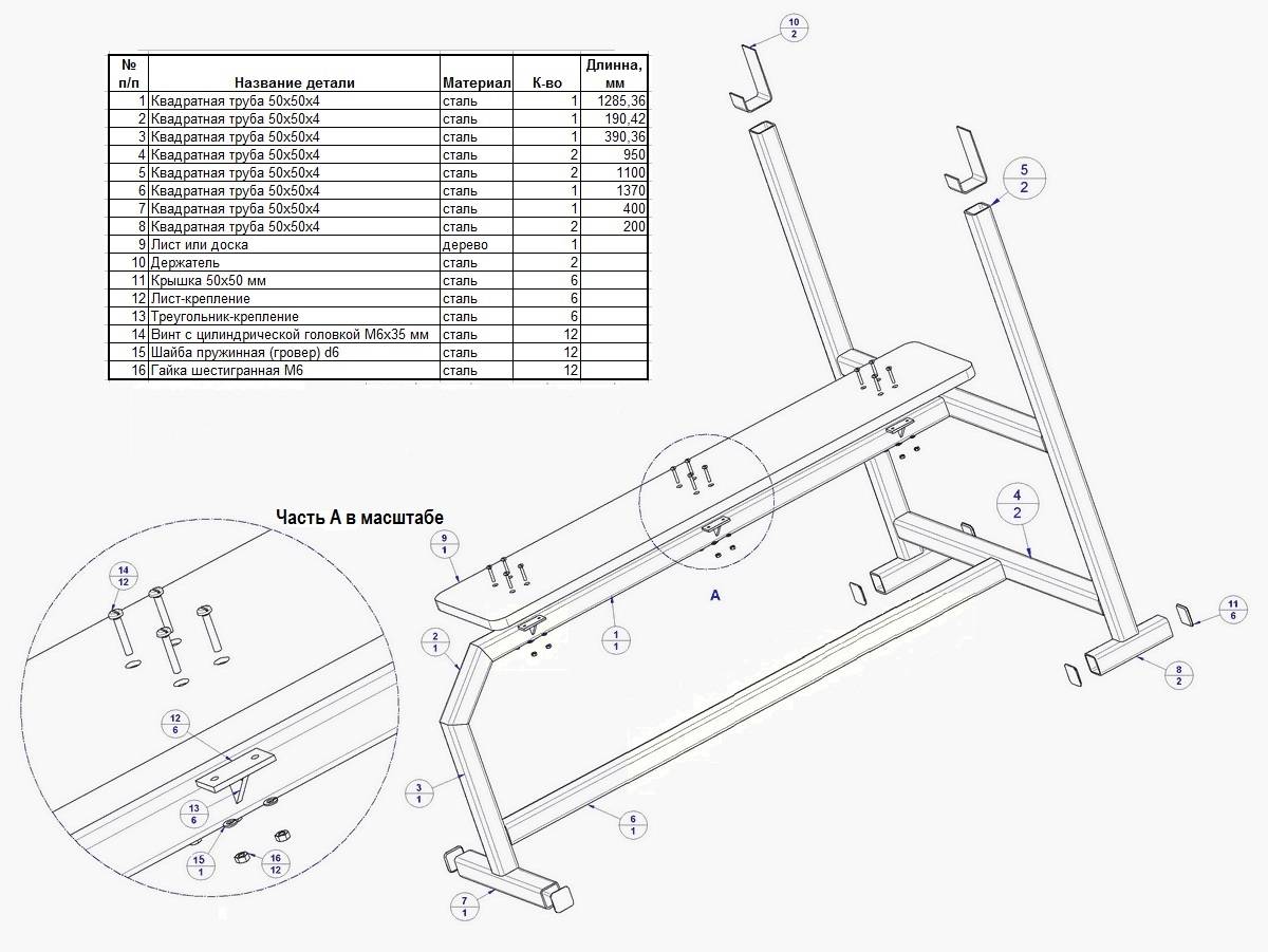 Материалы для сборки скамьи: