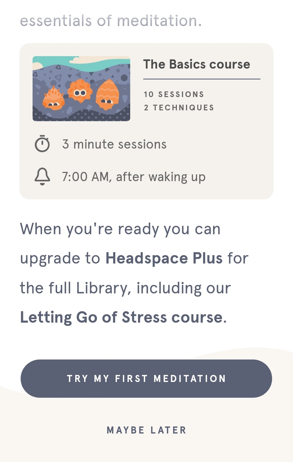 Минуты осознанности становятся полезной привычкой, а пользователь понимает ценность практики через опыт. Следующий шаг, такой же естественный и мягкий — выбрать более продвинутый курс в приложении. Можно попробовать разные виды медитации и выбрать ту, которая лучше всего подойдет.
