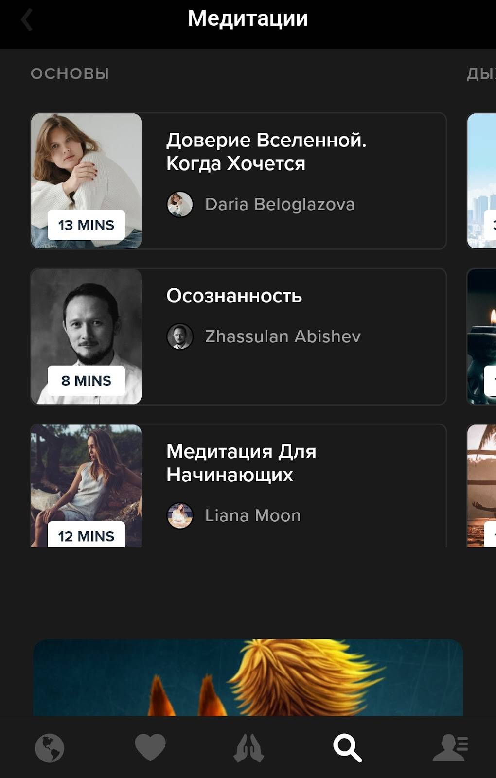 «Мо» — «классическое» приложение для медитации. Главный раздел — библиотека аудиозаписей, которые помогают сосредоточиться и стать лучшей версией самого себя.