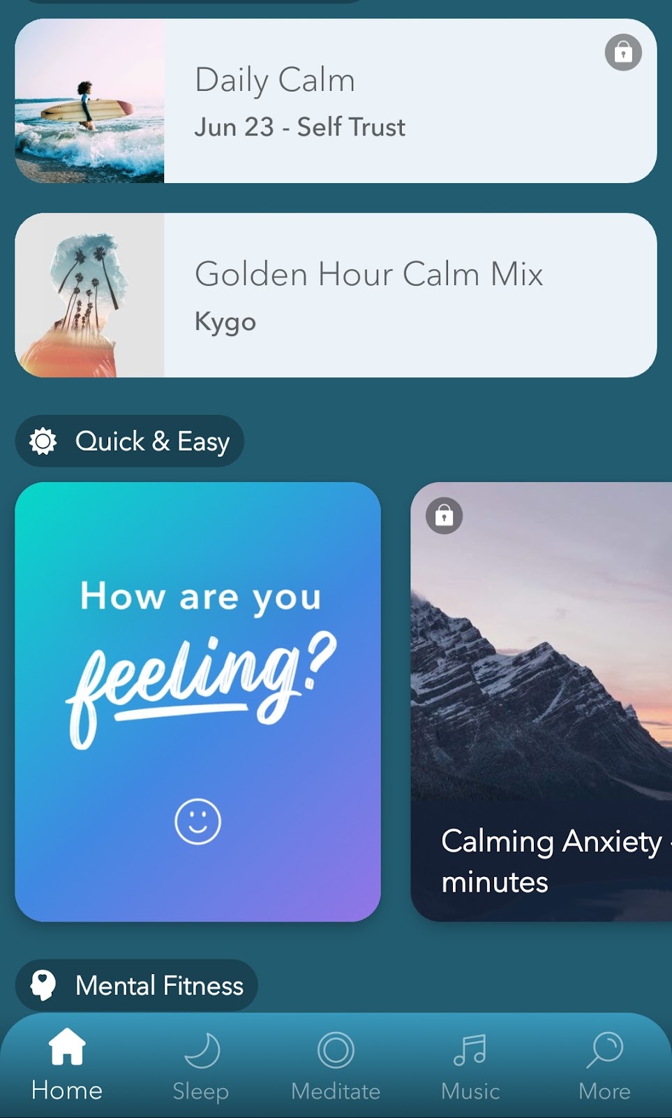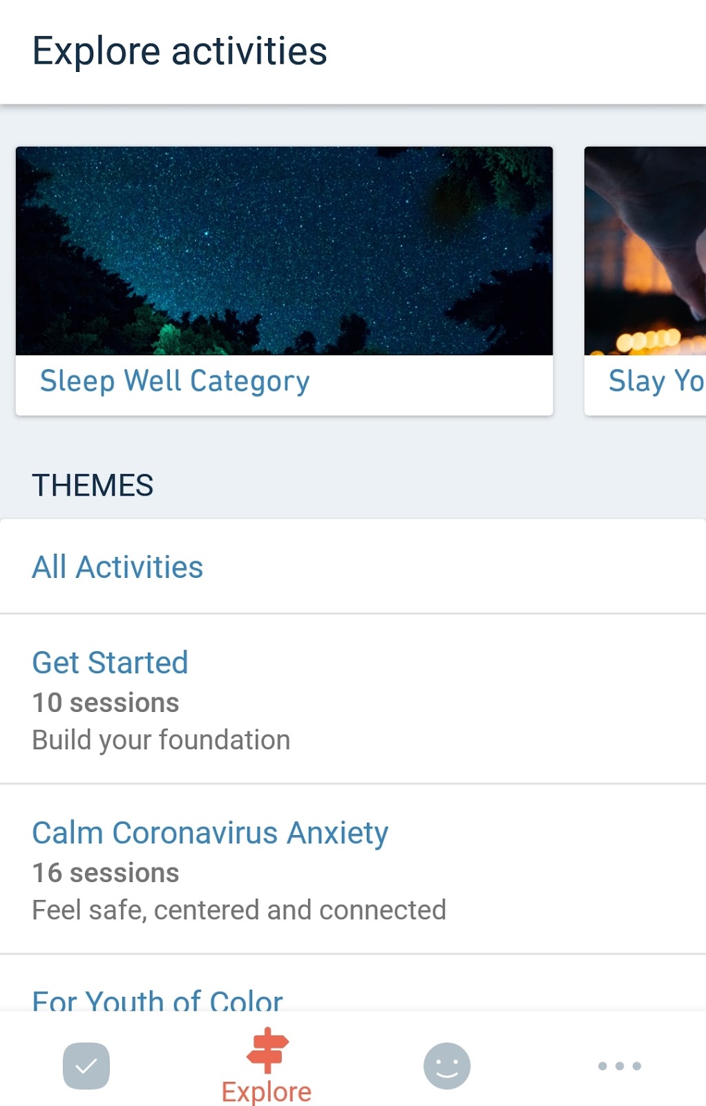 Отдельная часть приложения посвящена сну. Два набора медитаций помогают научиться им управлять, а 17 «Историй на ночь» — уснуть прямо сейчас. Каждая из них — это сказка, интересная в начале, но которая становится все скучнее и скучнее к концу. Самая короткая длится 14 минут, самая длинная — почти час. В отзывах нам пишут, что никогда не получается дослушать ее до конца, человек всегда засыпает раньше.