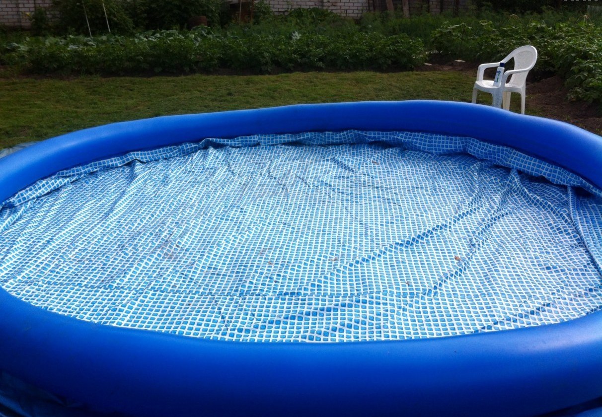 Крупные модели часто продаются с тентом, сачком и подстилкой. Тент убережет воду от пыли и падающих листочков. К тому же, навес исключит возможность солнечного удара. С помощью сачка легко можно будет достать попавший в воду мусор. Особую подстилку подкладывают под дно бассейна. Это позволяет не чувствовать под ногами любые неровности земли.