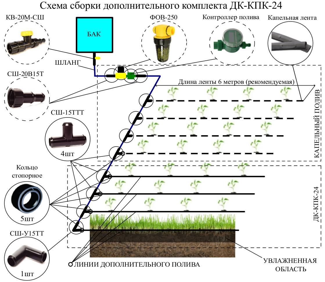 Но следует учитывать, что возможна разная комплектация системы капельного полива. Источником воды, может, служить: