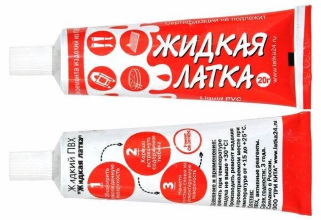 - Существует удобный раствор, называющийся «жидкая латка». Он представляет из себя жидкий ПВХ, высыхающий за 10 минут.