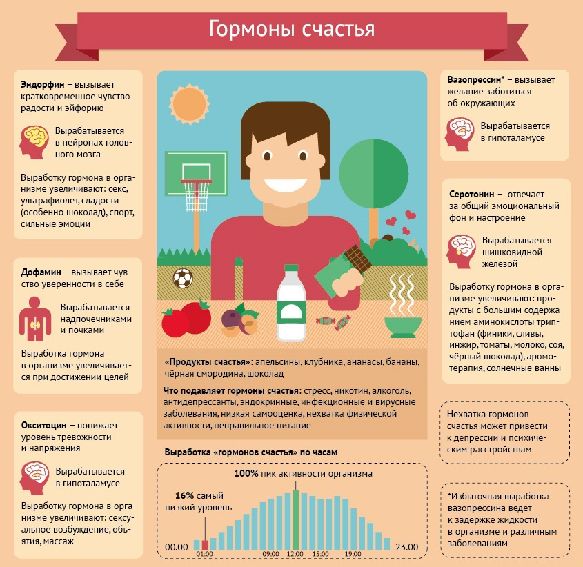 Эндорфин, дофамин и серотонин – «троица» гормонов, которые отвечают за радость, удовольствие и отличное настроение. Кортизол и адреналин стабилизируют оптимальную работу организма в стрессовых ситуациях. И, конечно, нельзя не упомянуть главные мужские и женские гормоны – тестостерон и эстроген.