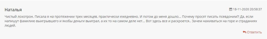 Встречаются отзывы позитивные: кто-то получил 40 рублей, кто-то 70. Действительно просто так. Может быть, это и фейки, а может, и вправду время от времени администрация 24000.ru раздает небольшие суммы, чтобы подогреть интерес аудитории.