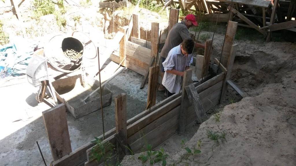 В смесь добавляют 25 л воды и перемешивают до однородного состояния. Получившийся бетон используют как для дна бассейна, так и для его опорных стоек.