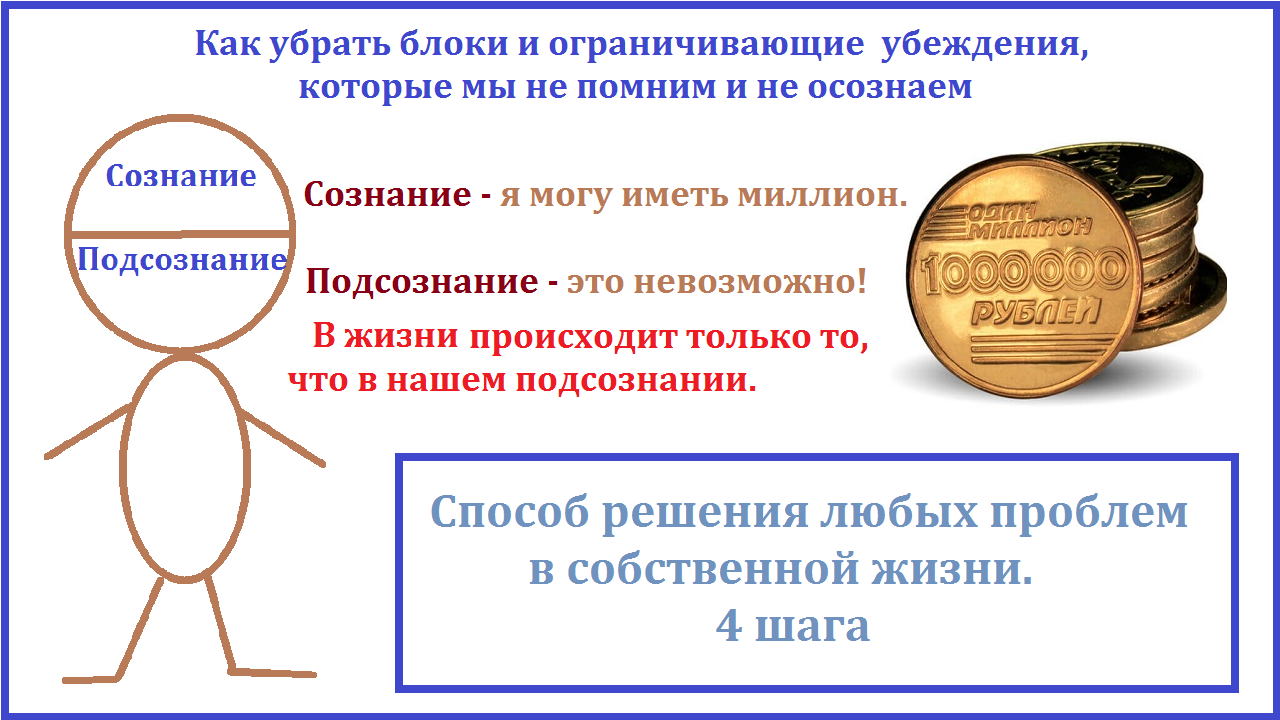 На самом деле, осознать и поднять на поверхность причины «недостижения» — это главный пункт, выполнив который, вы сразу же неизбежно начнете двигаться к цели.