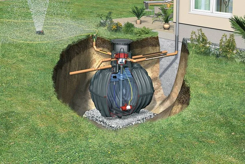 Дождевую воду из подземного резервуара вывели на полив и к коммуникациям в домеИсточник abitare.com