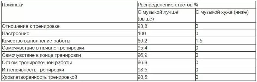 Данные показывают, что музыка оказывает положительное воздействие на все показатели тренировки.