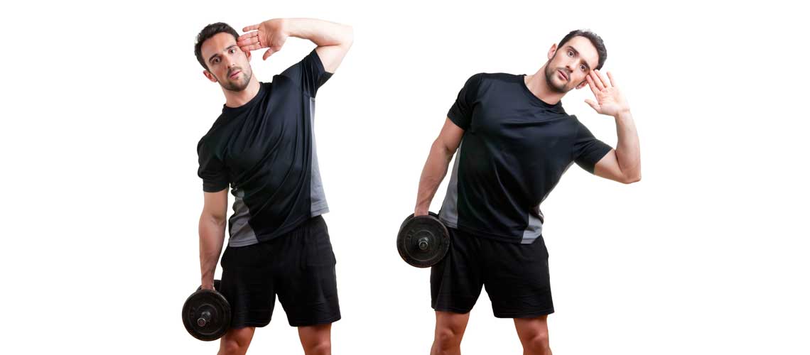 - Боковые наклоны для косых мышц живота с отягощением или без.