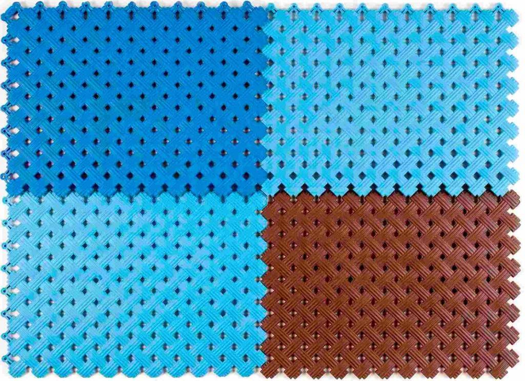 Антискользящее покрытие для бассейна собирается в полотно посредством несложных по принципу работы замков. Это позволяет легко разбирать настил вокруг бассейна с целью уборки.