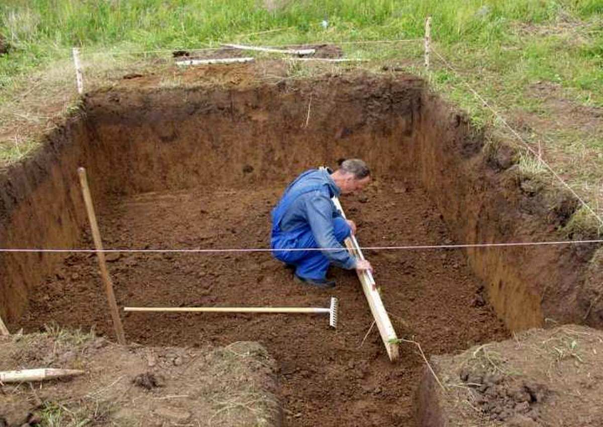 Далее выкапываем котлован под основание. Глубина ямы зависит от того, какой тип, модель или форма водоема.
